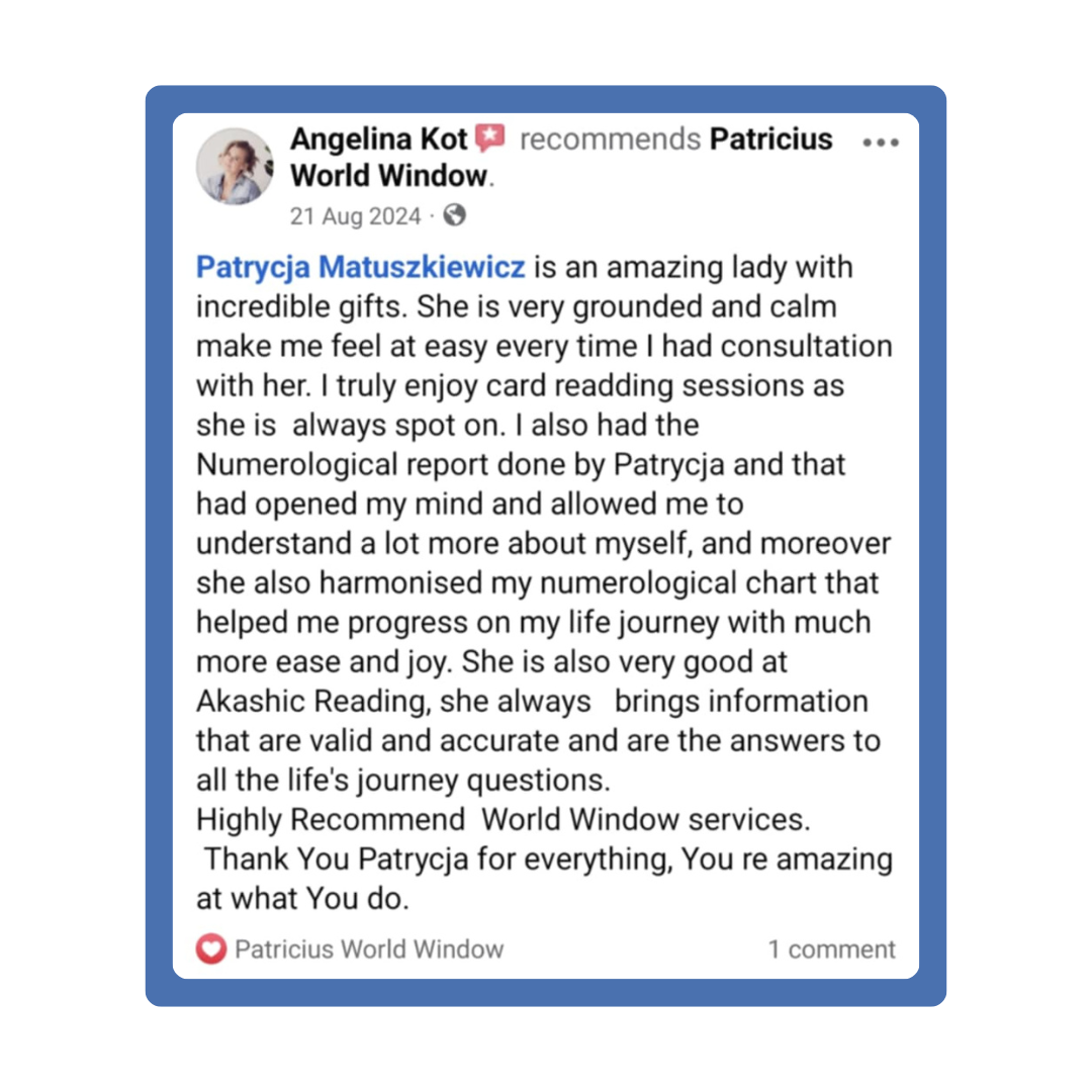 Personal and spiritual growth is not always an easy journey. It is a path through light and shadow, through questions that have no simple answers, through moments of doubt and great awakenings. I know how it is – and I see you. I see your openness to change, your strength, your curiosity. If you feel that the time has come to look deeper—into your soul, your history, your energy—I invite you to work with me.